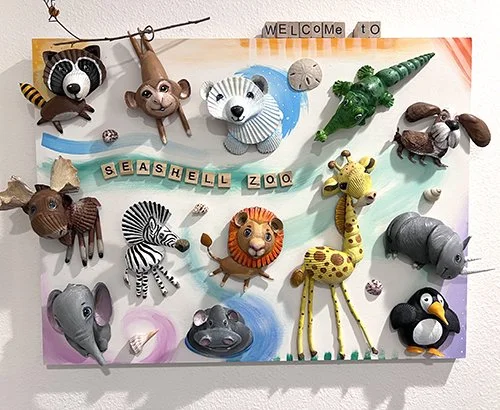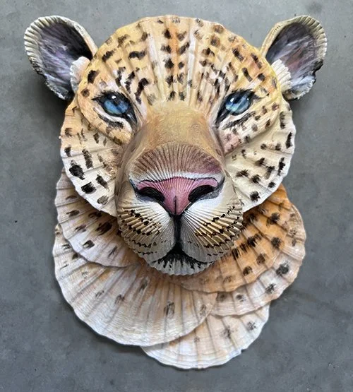 I have the good fortune of living in Florida. Seashells that I have been picking up for years along the Atlantic Ocean and Gulf of Mexico shorelines found their way into my art studio in mid-2023. I put a few together, glued, and then painted them to look like each of my three cats. Eventually, I tried a giraffe, a butterfly, and a tiger. At the same time, I was becoming aware of creatures I never knew existed. I am now totally captured by the astounding beauty of life on this planet. I am also aware of the precarious situations of many. Seashell Zoo is a labor of love. Each portrait is my sincere attempt to reflect Earth’s incredible artistic diversity of species, many of which are endangered. They are 100% shells, glue, and paint. As friends began to see what I was creating with shells, several suggested I do seashell portraits of their dogs, cats, and horses. Some are displayed here. Thank you for taking a look!